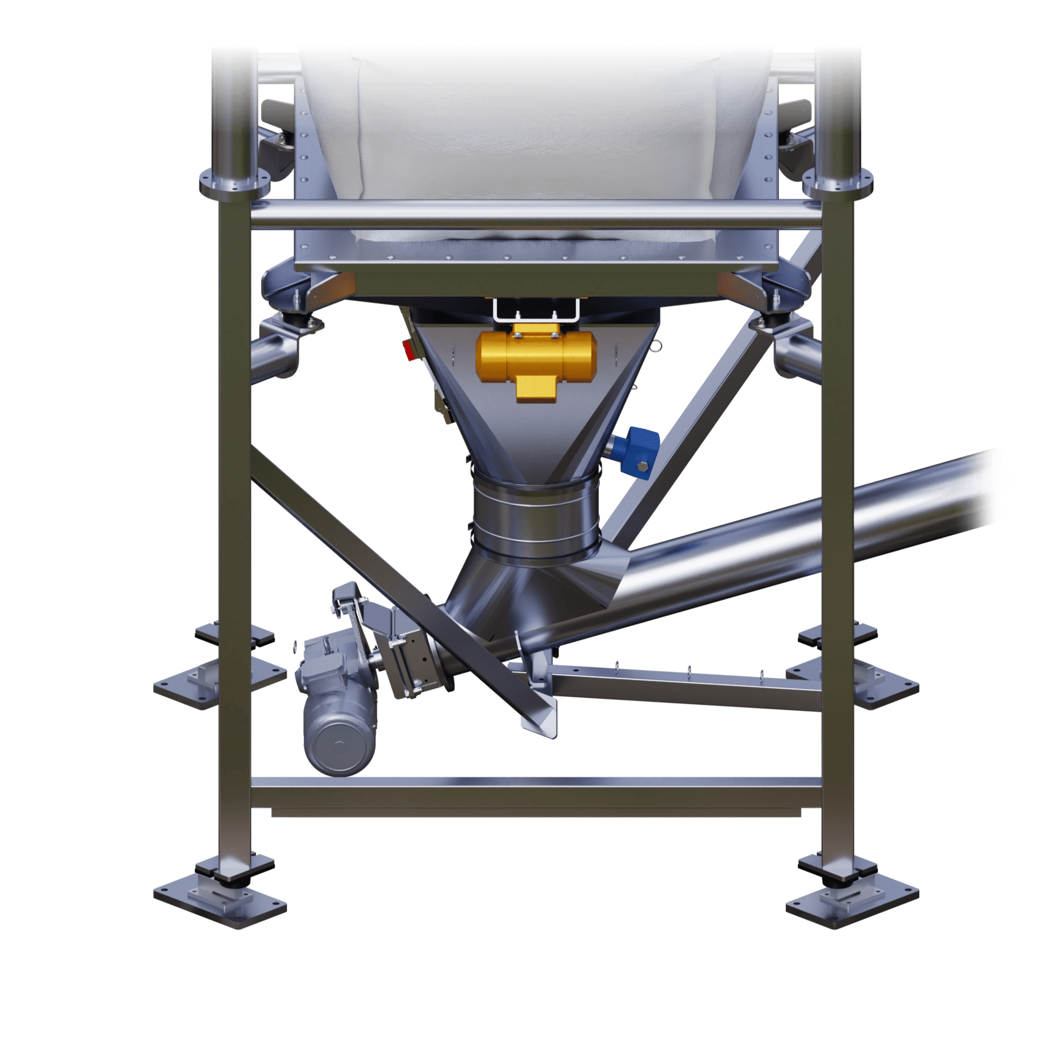 - The support pan holds the bulk bag in place and provides safe operation