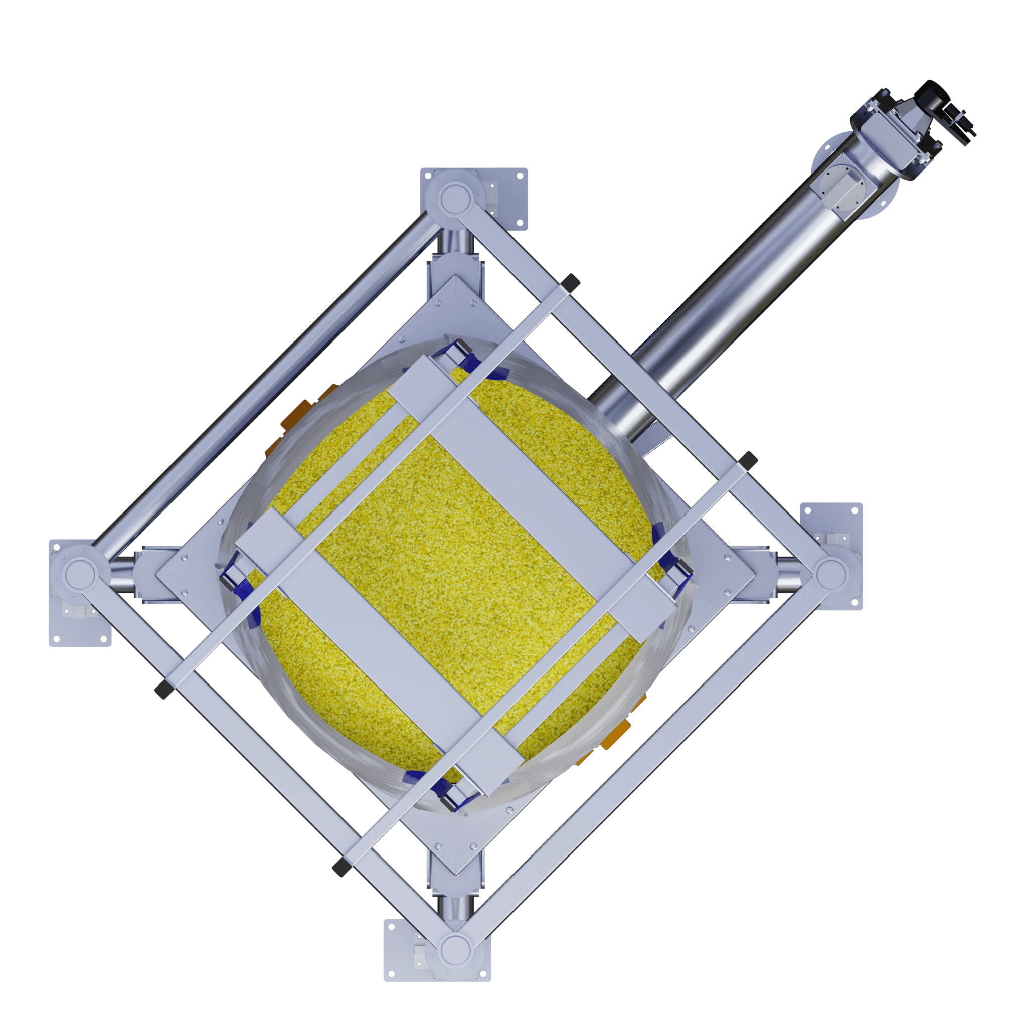 - Spring loaded column supports to the suspension frame are available to gradually lift the bag during the latter stages of discharge